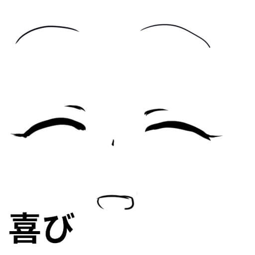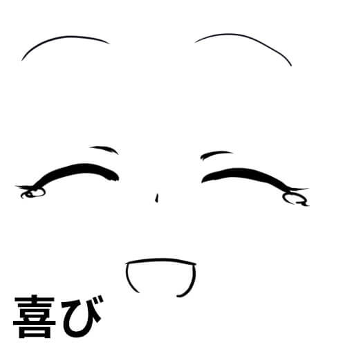 目尻を下げるか、閉じます。口は丸く小さめに少し横に引っ張ります。もしくは半開き。