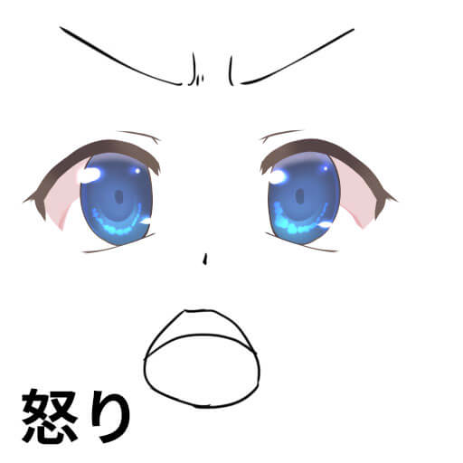 同じ怒りですが、まゆを目に寄せるほど、口を大きく開くほど、怒っている度合いが大きくなります。
