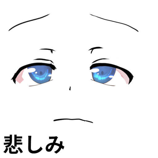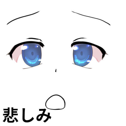 目を開ける場合は細めましょう。涙を描いたりしても表現しやすいです。