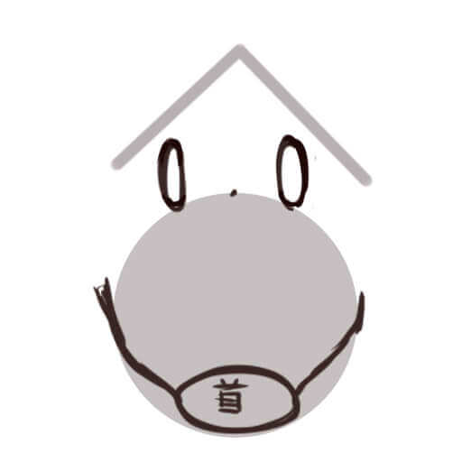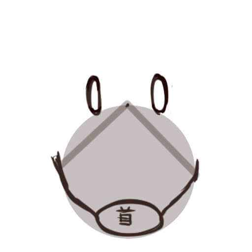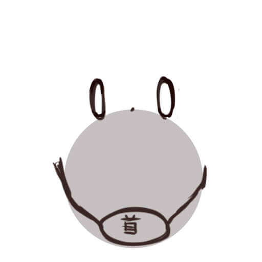 耳を真ん中に描き、あごとつなげます。