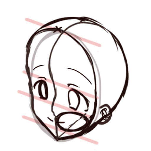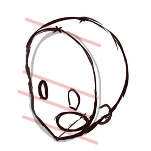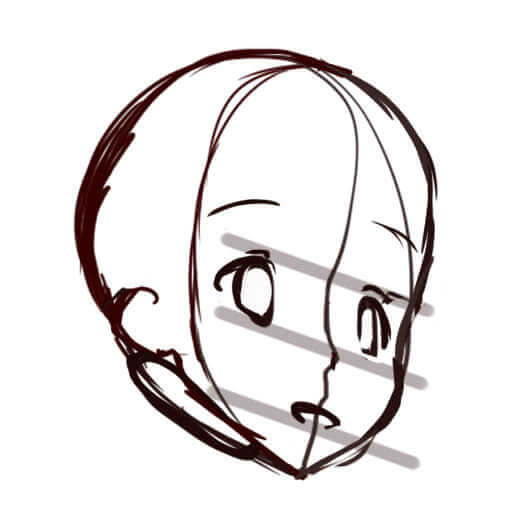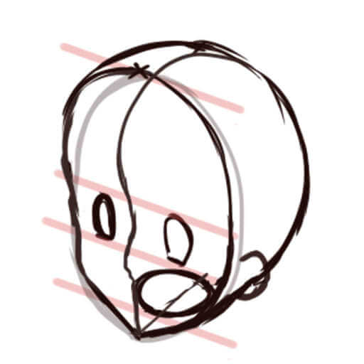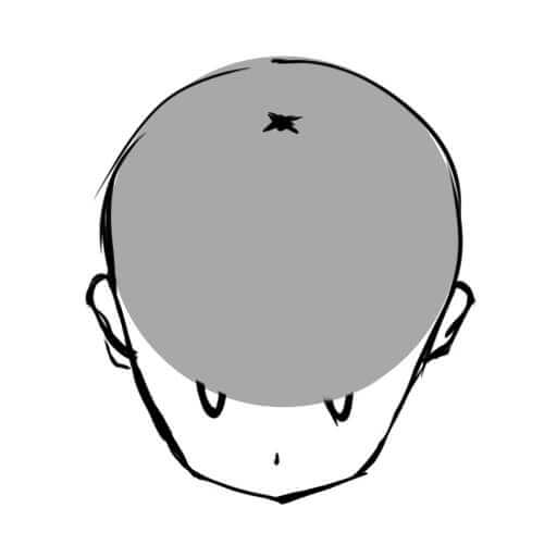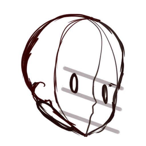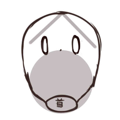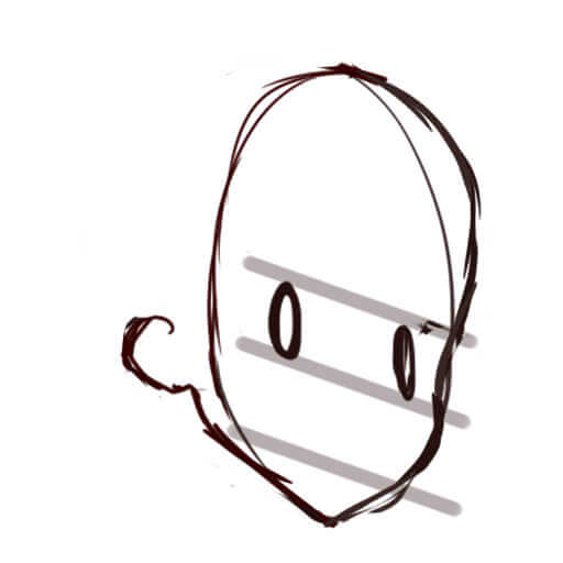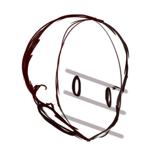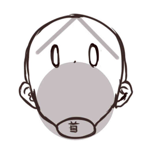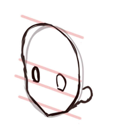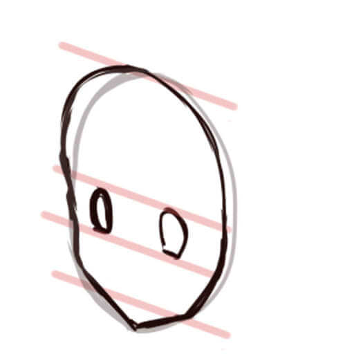 頭の後ろ側が意外と膨らんでいるので、描くときに注意してください。