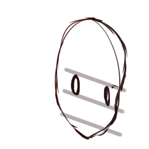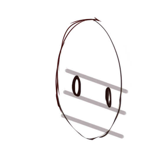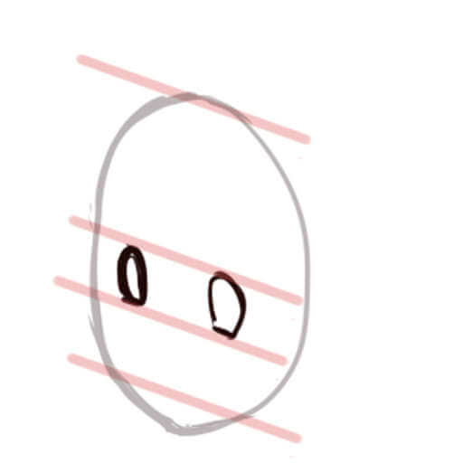 アタリを取る際は漫画で見る、楕円形ような目でもいいです。